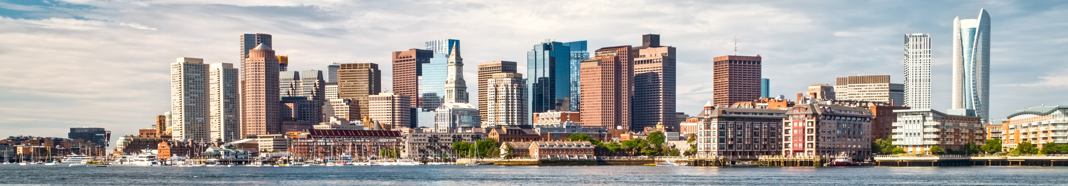Bostons North End-Skyline mit Felsenpier davor